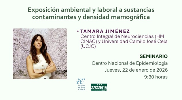 Lugar: Sala de seminarios Alicia Llácer del Centro Nacional de Epidemiología (Instituto de Salud Carlos III, Pabellón 12, planta baja).
