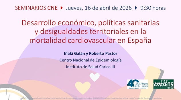 Lugar: Sala de seminarios Alicia Llácer del Centro Nacional de Epidemiología (Instituto de Salud Carlos III, Pabellón 12, planta baja).